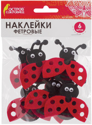 Наклейки из фетра ОСТРОВ СОКРОВИЩ, «Божьи коровки», 6 шт., ассорти
