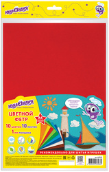 Цветной фетр ЮНЛАНДИЯ, МЯГКИЙ А4, 1 мм, 10 листов, 10 цветов, плотность 160 г/м2
