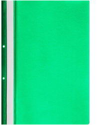 Скоросшиватель используется для хранения различного рода документации, для ведения документооборота, систематизации договоров, других важных бумаг. Дополнительные отверстия на корешке позволяют подшить скоросшиватель к папке. Скоросшиватель изготовлен из гладкого пластика . Толщина верхнего прозрачного листа - 110 мкм, нижнего цветного листа - 150 мкм. С прозрачной верхней обложкой. На лицевой стороне находится карман с белым бумажной полосой для указания содержания, вместимость - 100 листов стандартной плотности. Цвет- зеленый
