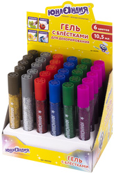 Гель с блестками ЮНЛАНДИЯ, для декора, поделок, DIY, творчества, оформления, 10,5 мл, цвета ассорти, в дисплее, 30 шт/уп