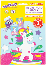 Набор для творчества ЮНЛАНДИЯ, «Картина из цветного песка», «Единороги», 2 самоклеящиеся основы 20х15 см