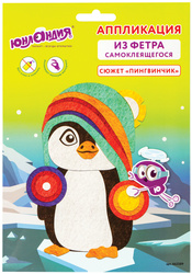 Набор для творчества ЮНЛАНДИЯ, «Аппликация из фетра», «Пингвинчик», основа 20х15 см