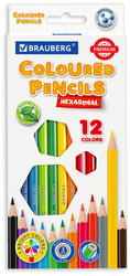Карандаши цветные BRAUBERG PREMIUM, 12 цветов, шестигранные, пластиковые