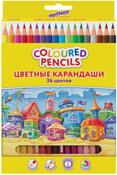 Карандаши цветные ЮНЛАНДИЯ «ДОМИКИ», 36 цветов, шестигранные