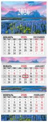 Календарь квартальный на 2026 год BRAUBERG EXTRA, Люпины, 3-блочный, 3 спирали