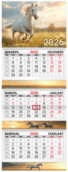 Календарь квартальный на 2026 год BRAUBERG EXTRA, Символ 2026, 3-блочный, 3 спирали