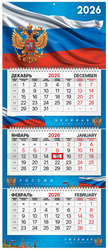 Календарь квартальный на 2026 год BRAUBERG PREMIUM, Символика, 3-блочный, 3 спирали