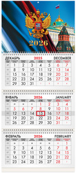 Календарь квартальный на 2026 год BRAUBERG STANDARD, Символика России, 3-блочный, 3 спирали