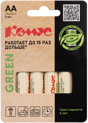 Батарейка AA пальчиковая Комус Green (8 штук в упаковке)