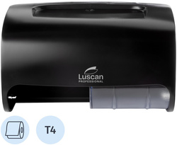 Диспенсер для туалетной бумаги в рулонах Luscan Professional Etalon Doublemini пластиковый черный Диспенсер для туалетной бумаги в рулонах Luscan Professional Etalon Doublemini отлично подходит для использования как для дома, так и для мест с низкой и средней проходимостью таких, как туалетные комнаты в ресторанах, офисах, фитнес центрах и т. д. Диспенсер предназначен для подачи туалетной бумаги бытовых рулончиков с диаметром до 115 мм. Корпус диспенсера изготовлен из прочного ABS-пластика. Компактный диспенсер вмещает два стандартных рулончика и обеспечивает высокий уровень гигиены и комфорта за счет того, что расходный материал находится внутри корпуса и посетитель дотрагивается только до той туалетной бумаги, которой будет пользоваться. Цвет: черный. Диспенсерная система: T4. Вид расходных материалов: рулонный с втулкой. Вид крепления: настенное. Страна-изготовитель: Китай. Гарантийный срок работы: 1 год. Размер диспенсера: 264×160×160 мм. Материал: ABS-пластик, полистирол Комплект поставки: В комплект входят крепежные материалы для установки, инструкция и ключ. Легкость и простота в эксплуатации гарантируют долгосрочное и надежное функционирование диспенсера.