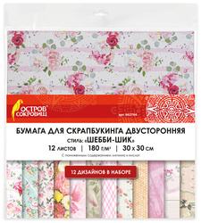 Бумага для скрапбукинга ОСТРОВ СОКРОВИЩ, 30х30 см «Шебби-шик», двусторонняя, 12 листов, 12 дизайнов, 180 г/м2