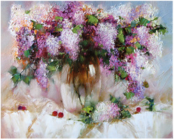 Картина по номерам 40х50 см ОСТРОВ СОКРОВИЩ, «Натюрморт с сиренью и черешней» на подрамнике, акрил, кисти