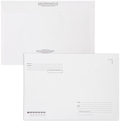 В конверт формата C4 можно вложить документ формата А4. На передней стороне конверта имеются адресные указатели: "Куда", "Кому", "От кого", "Откуда". Плотность бумаги 100 г/м2 позволяет размещать тяжелую корреспонденцию и скрывать содержимое от посторонних глаз. Отрывная полоса типа STRIP обеспечивает надежное запечатывание конверта и сохранность личного письма или важного документа.