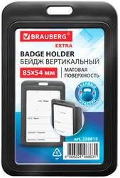 Бейдж вертикальный жесткокаркасный BRAUBERG EXTRA, 85х54 мм, без держателя, черный