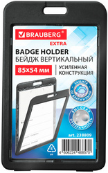 Бейдж вертикальный жесткокаркасный двусторонний BRAUBERG EXTRA, 85х54 мм, без держателя, черный