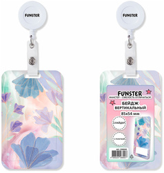 Бейдж вертикальный жесткокаркасный слайдер с 3D-печатью FUNSTER, Pastel grade, 85х54 мм, с держателем-рулеткой 70 см