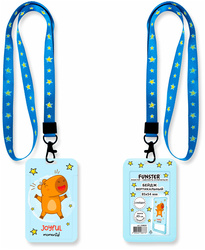 Бейдж вертикальный жесткокаркасный слайдер с 3D-печатью FUNSTER, Капибара, 85х54 мм, лента 45 см, с карабином