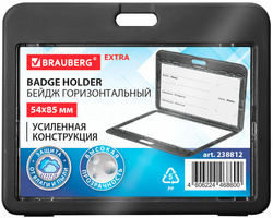 Бейдж горизонтальный жесткокаркасный двусторонний BRAUBERG EXTRA, 54х85 мм, без держателя, черный