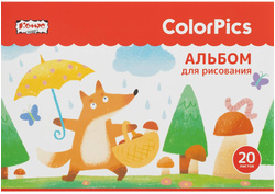Альбом для рисования КОМУС Класс ColorPics, 20 листов, А4, 4 шт/уп, скрепка