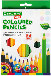 Карандаши цветные утолщенные BRAUBERG KIDS, 24 цвета, шестигранные, натуральное дерево