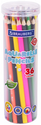 Карандаши цветные акварельные BRAUBERG PREMIUM AQUARELLE, 36 цветов в тубе, трехгранные, утолщенный грифель 4 мм, натуральное дерево
