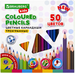 Карандаши цветные BRAUBERG KIDS NEW, 50 цветов, трехгранные