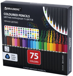 Карандаши цветные чёрное дерево BRAUBERG BLACK WOOD, 75 цветов, мягкий грифель 3 мм