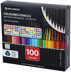 Карандаши цветные чёрное дерево BRAUBERG BLACK WOOD, 100 цветов, мягкий грифель 3 мм