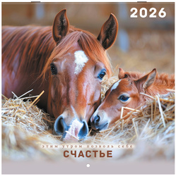 Календарь настенный перекидной на скрепке BRAUBERG на 2026 год, Благородные лошади, 12 листов, 285х285 мм