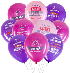 Шары воздушные BRAUBERG KIDS, 30 см с рисунком «Приколы для неё», комплект 10 штук, ассорти
