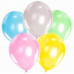 Высококачественные однотонные шары классической формы. Изготовлены из натурального латекса, обеспечивающего прочность изделия при аккуратном использовании. Стандартный размер - 30 см. 10 шаров 5 разнообразных нежных перламутровых оттенков украсят любой интерьер.