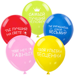 Шары воздушные ЗОЛОТАЯ СКАЗКА, 12« (30 см), комплект 5 штук, ассорти 5 цветов, с рисунком »Комплименты", пакет