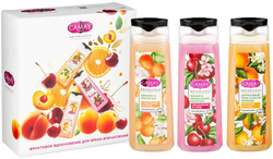 Гель с ароматом вишни и миндального молочка содержит витамины А и Е, глубоко увлажняет кожу, тонизирует её и подходит для использования в качестве пены для ванны. Средство с цитрусовым миксом и маслом жожоба наполняет кожу энергией, смягчает и питает её, препятствует потере влаги.