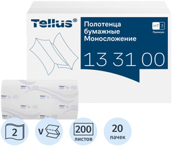 Полотенца бумажные листовые Tellus НЗ V-сложения (ZZ) 2-слойные белые 20 пачек по 200 листов (133100)