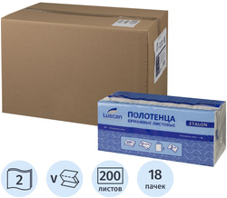 Бумажные полотенца LUSCAN Professional Н3, двухслойные, белые, складка ZZ(V), 22x24 см, 200 листов, 18 шт/уп